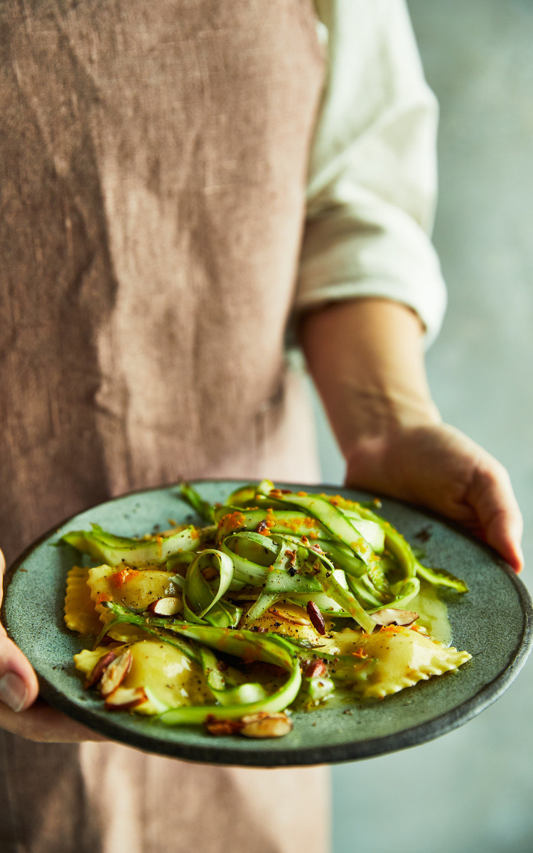 RAVIOLI RICOTTA & SPINAT / 4OST / GORGONZOLA / BROCCOLI MED ASPARGES, MANDLER OG STEGT RASP