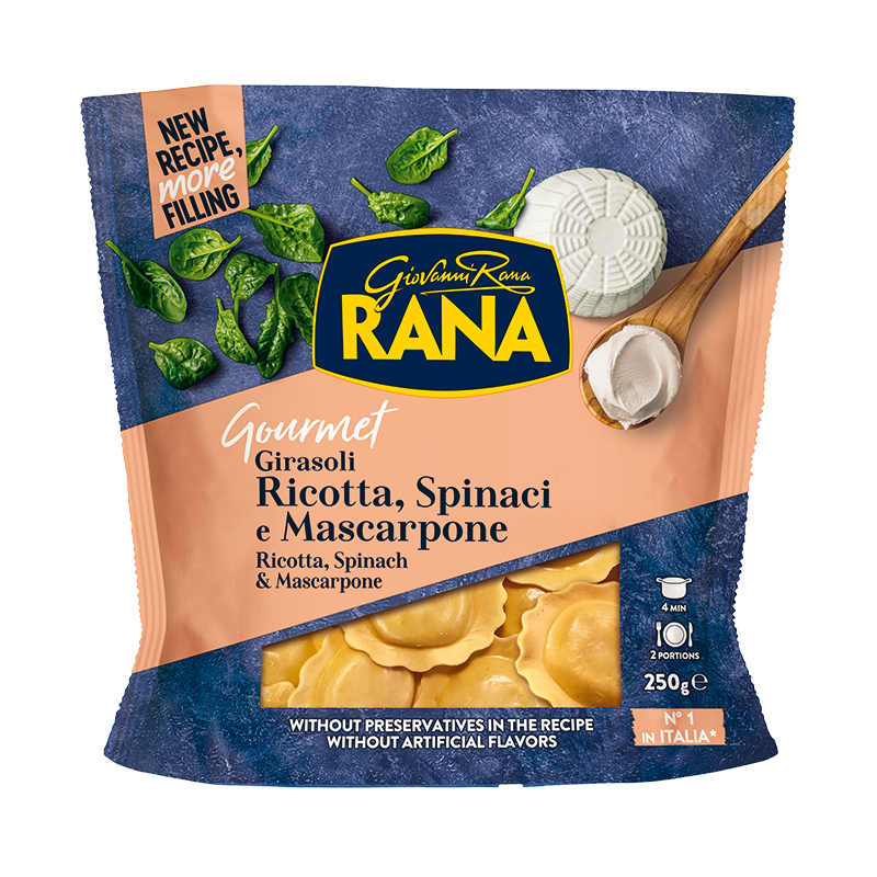 Lad dig friste af disse udsøgte ravioli! En overraskende fyldning, der kombinerer cremet ricotta og mascarponeost med spinat. En smuk pastadej, der giver en elegant præsentation.